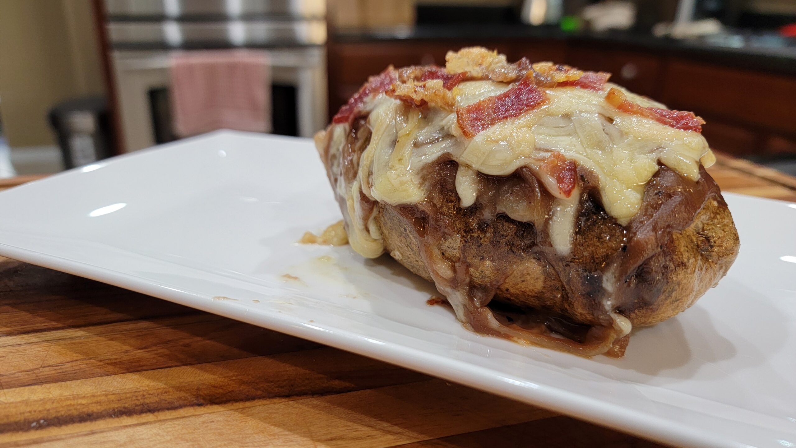 Two of my all-time favorite steak house sides have to be the Twice Baked Potato and French Onion Soup. I went WAY too long into this life before I decided to try to combine those two things. It’s embarrassing that it never occurred to me that these two things could go together so well. Learn from my mistake and throw these two all-star recipes into mashup mode and make the French Onion Twice Baked Potato, NOW!